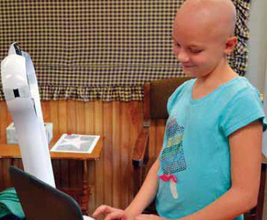 Morgan has used the VGo to go to school twice so far, joining her class around 9 a.m. once they got back from first period band and began working on math and science. She was able to sit up in her bed while wearing her pajamas and participate in the school day.